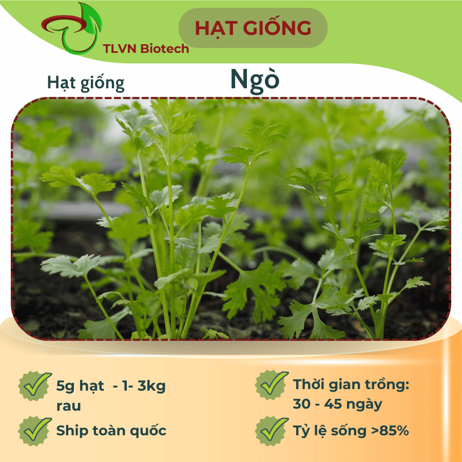 Mẹo Gieo Hạt (Quan trọng): Hạt ngò thường là hạt kép (hai hạt dính vào nhau). Bà con nên dùng vật cứng lăn nhẹ hoặc chà xát để tách hạt kép thành hai nửa, giúp tỷ lệ nảy mầm cao và đồng đều hơn. Sau đó ngâm hạt trong nước ấm (3 sôi : 2 lạnh) khoảng 2-4 tiếng.